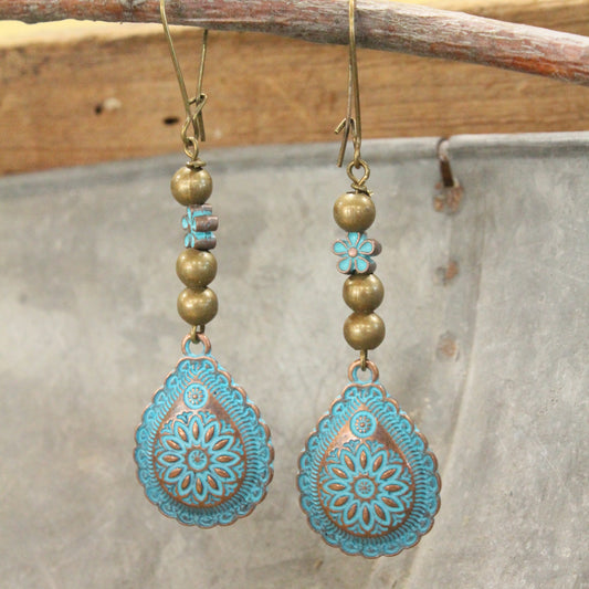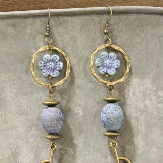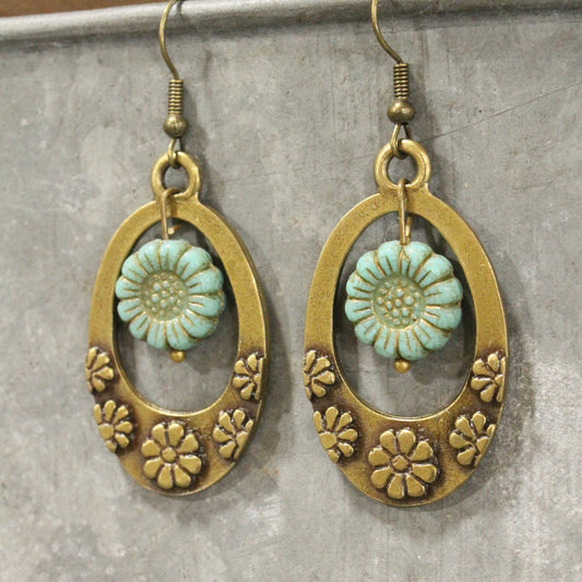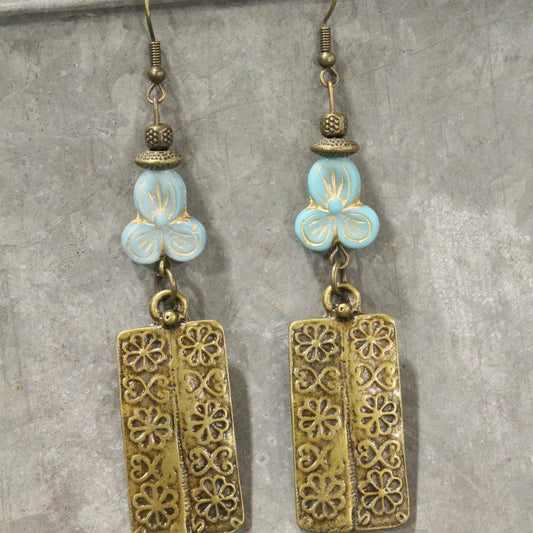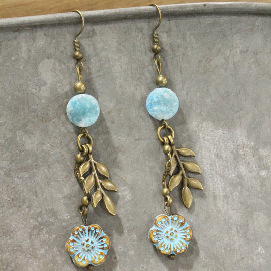 In Druzy Fashion Powder Blue Floral Czech Dangle Earrings