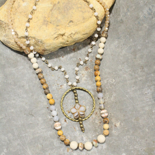 Czech Glass Flower Layered Vintage Beads Pendant Necklace