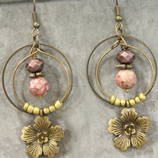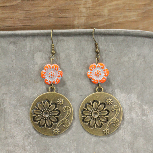 Flourishing Floral Czech Orange Charm Dangle Earrings