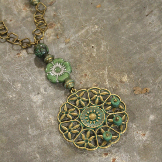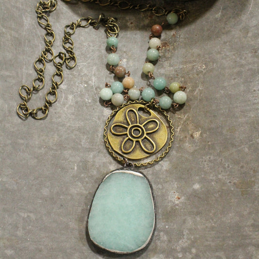 Stone & Bronze Vintage Flower Drop Pendant Necklace