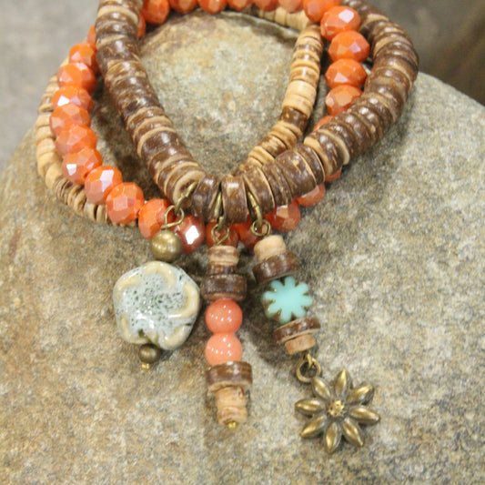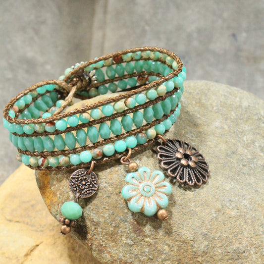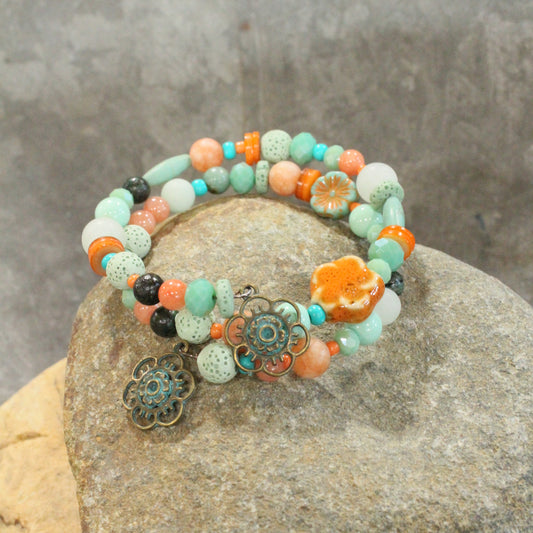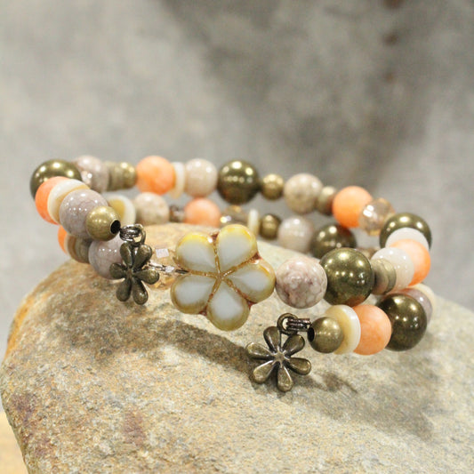 Czech Glass Flower Peach Parfait Wrap Bracelet