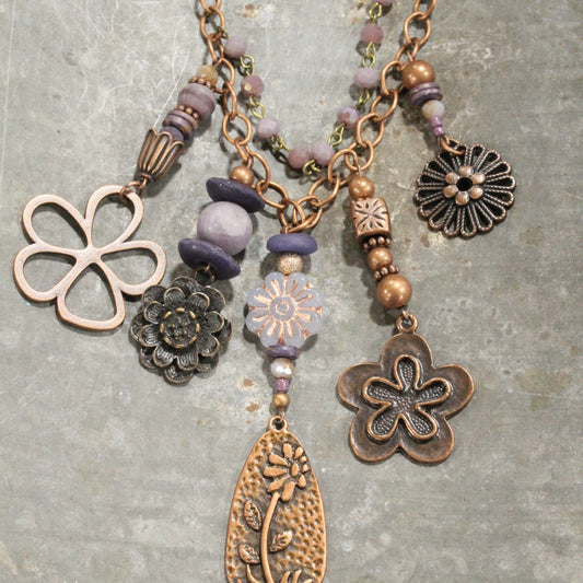 Lilac Czech Flower & Copper Charmed Layered Necklace