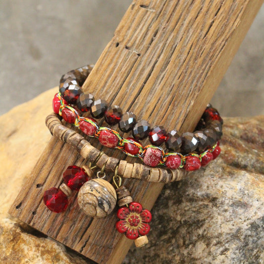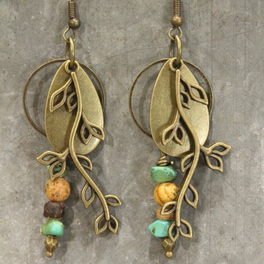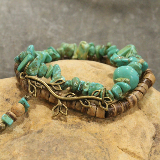 Bronze & Patina Leaf Branch Pattern Bracelet Set