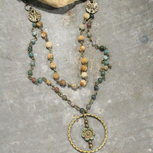 Picasso Wildflower Glass Bead Jade & Jasper Necklace