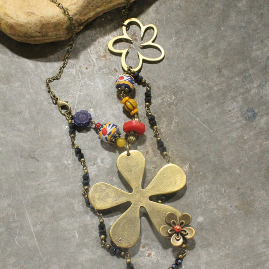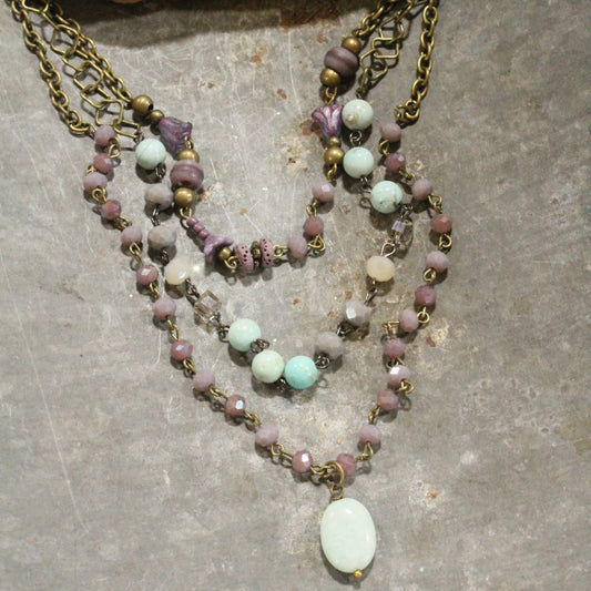Czech Flower & Stone Drop Layered Springtime Necklace