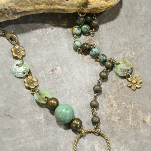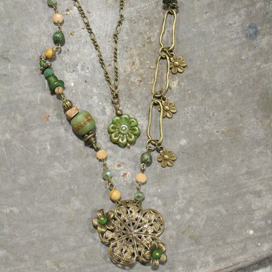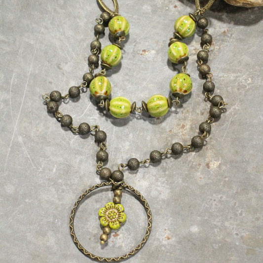 Picasso Wildflower Glass Bead Lime Stone Necklace