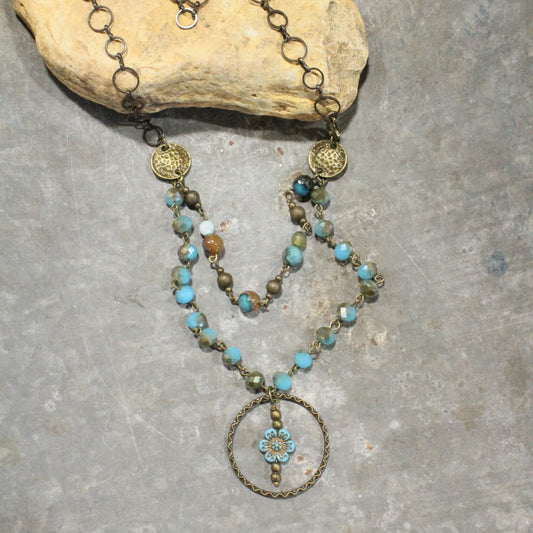 Picasso Wildflower Glass Bead Bright Cloudy Blue Necklace