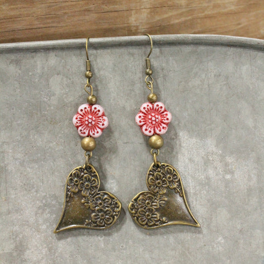Vintage Copper Flower Czech Dangle Drop Earrings