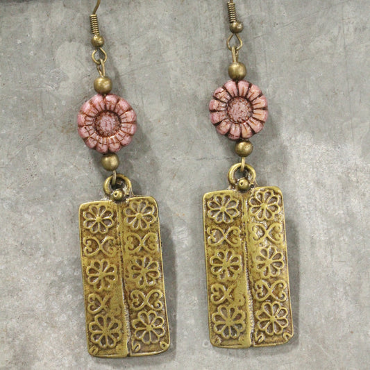Czech & Bronze Shades of Pink Charm Dangle Earrings