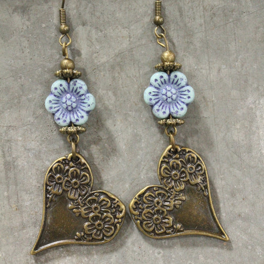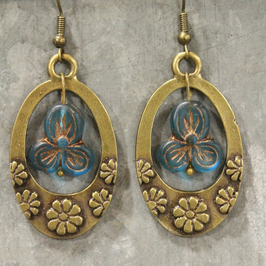 Czech & Bronze Icy Blue Charm Dangle Earrings