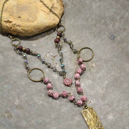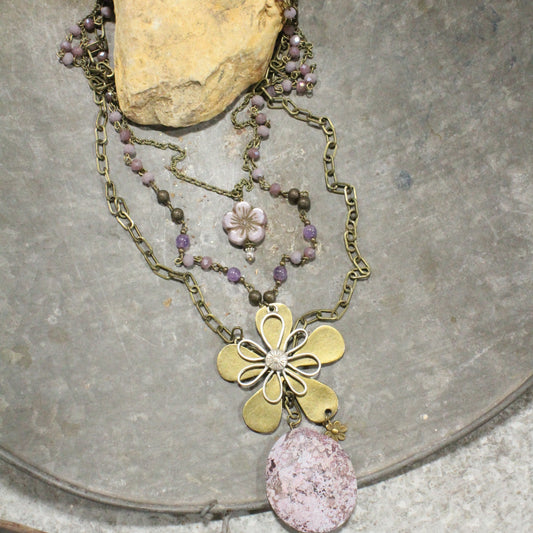 Bursting With Blooms Purple Czech & Stone Layered Necklace