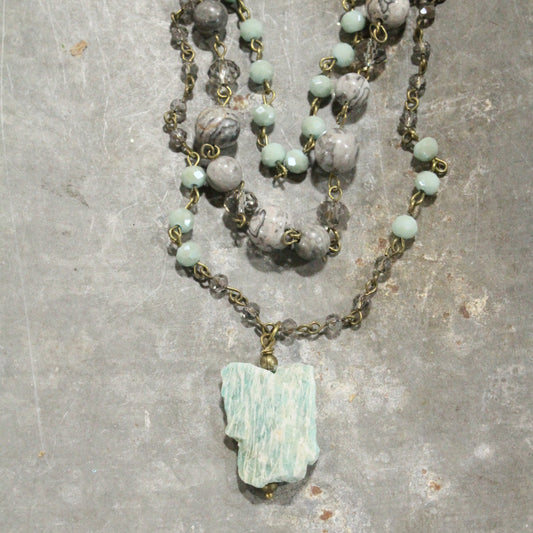 Natural Quartz, Glass & Stone Bead Layered Necklace