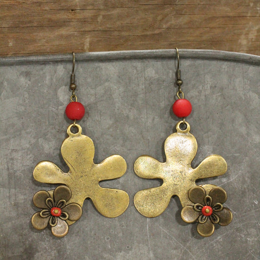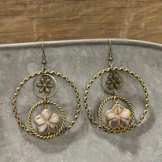 Czech Glass Flower Peach Parfait Dangle Earrings