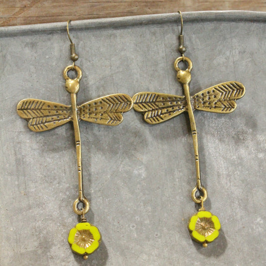 Sky Diving Dragonfly Dangle Drop Earrings