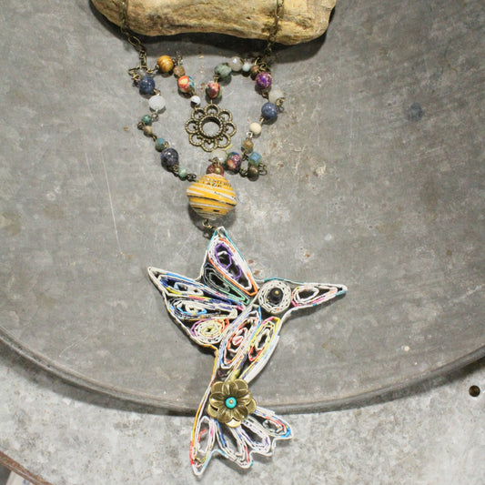 Recycled Hummingbird On Flight Layered Necklace