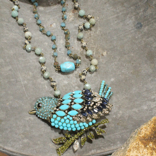 Blue Bird Watching Layered Pendant Necklace