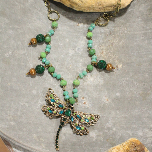 New Beginnings Dragonfly & Bronze Metal Charmers Necklace