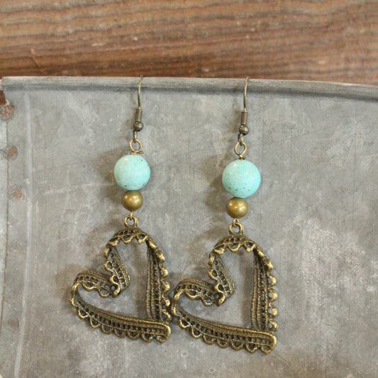 Bronze & Turquoise Heart Earrings