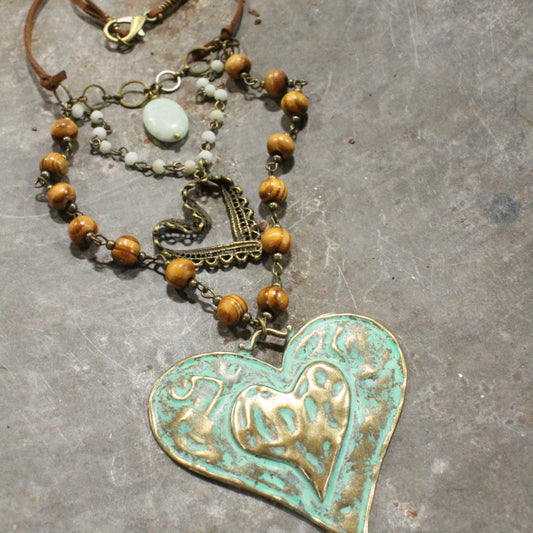 Verdigris Leather Heart Layered Necklace