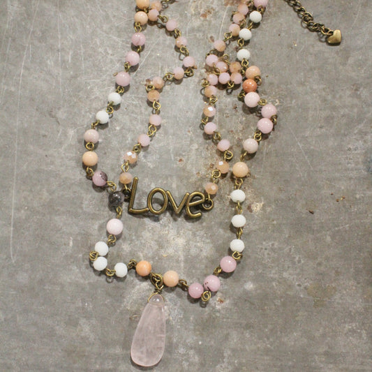Bohemian Layered Blush Stone & Crystal Necklace