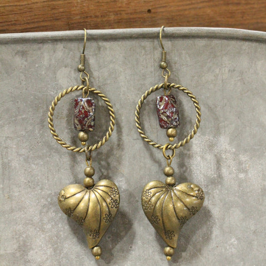 Ethnic Styled Heart & Czech Drop Earrings