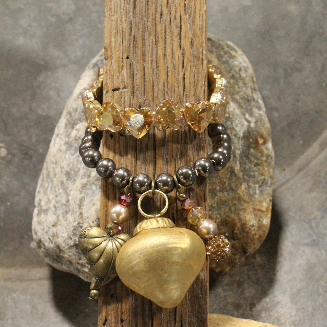 Our ONE-OF-A-KIND jewelry is handcrafted & created just for YOU. We carefully handpick our stones & findings to ensure that each Collection allows you to elevate your wardrobe & express your unique style. Our designs are created with vintage Czech beads, textured Picasso beads, crystals, natural stones; which includes: amazonite, quartz, fossil, jasper, jade, howlite, hematite, lazuli, turquoise, & more. To top off these designs, each piece will be touched with a mixture of nickel, gunmetal, bronze, silver, & copper, metals.