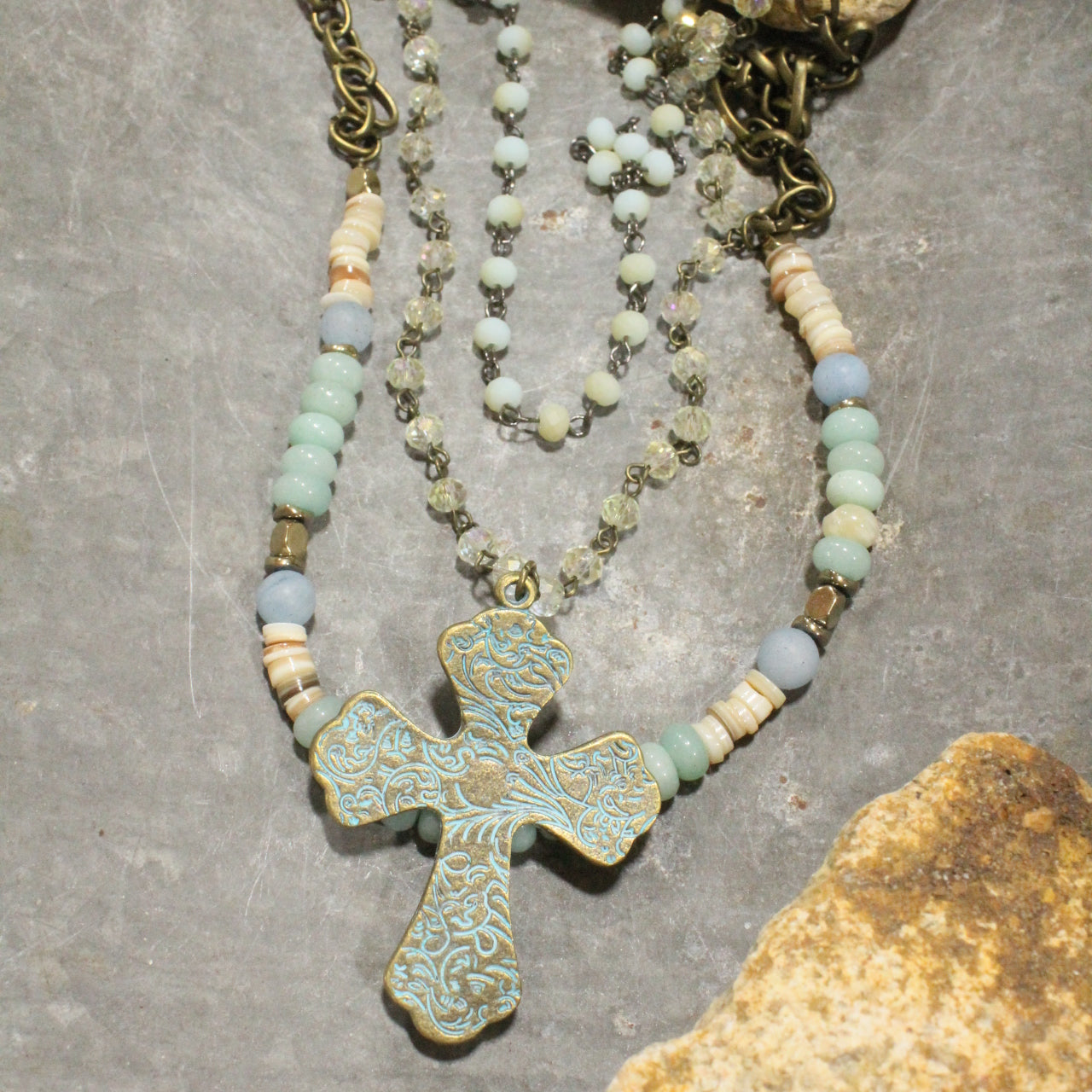 Our ONE-OF-A-KIND jewelry is handcrafted & created just for YOU. We carefully handpick our stones & findings to ensure that each Collection allows you to elevate your wardrobe & express your unique style. Our designs are created with vintage Czech beads, textured Picasso beads, crystals, natural stones; which includes: amazonite, quartz, fossil, jasper, jade, howlite, hematite, lazuli, turquoise, & more. To top off these designs, each piece will be touched with a mixture of nickel, gunmetal, bronze, silver, & copper, metals.