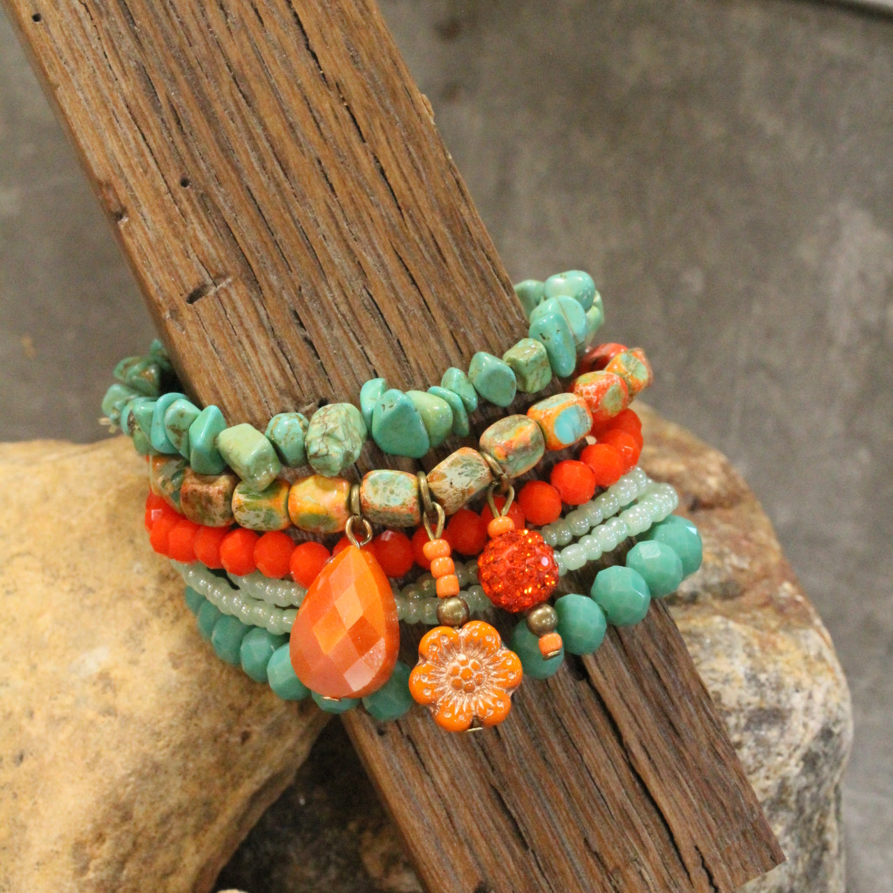 Our ONE-OF-A-KIND jewelry is handcrafted & created just for YOU. We carefully handpick our stones & findings to ensure that each Collection allows you to elevate your wardrobe & express your unique style. Our designs are created with vintage Czech beads, textured Picasso beads, crystals, natural stones; which includes: amazonite, quartz, fossil, jasper, jade, howlite, hematite, lazuli, turquoise, & more. To top off these designs, each piece will be touched with a mixture of nickel, gunmetal, bronze, silver, & copper, metals.